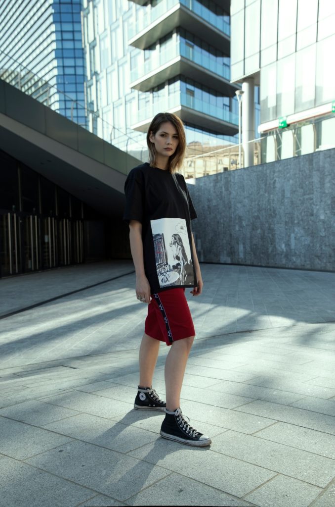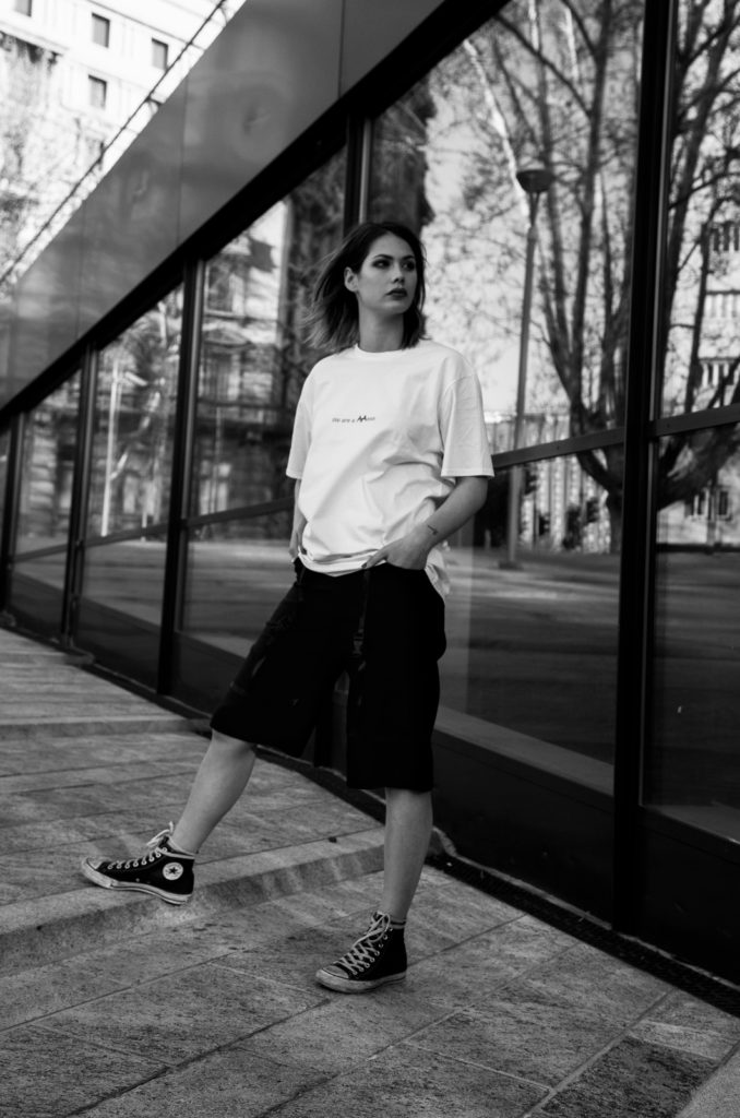 La collezione Chatting T-Shirts 2019 rappresenta del tutto un gioco creativo. La realtà diventa un’immagine, come cita la designer stessa: per farmi conoscere ho cercato di giocare con il mio nome e con la mia immagine, mandando dei messaggi, circa la mia persona.