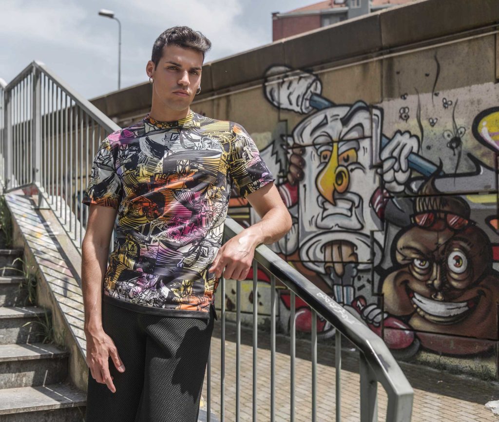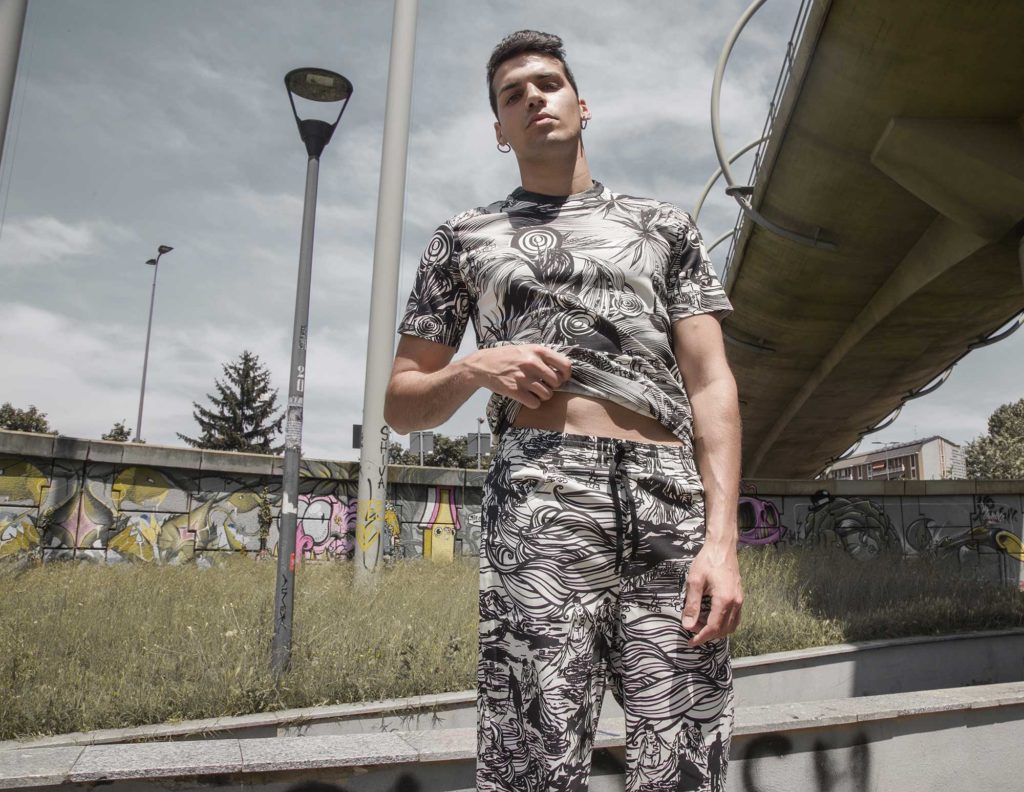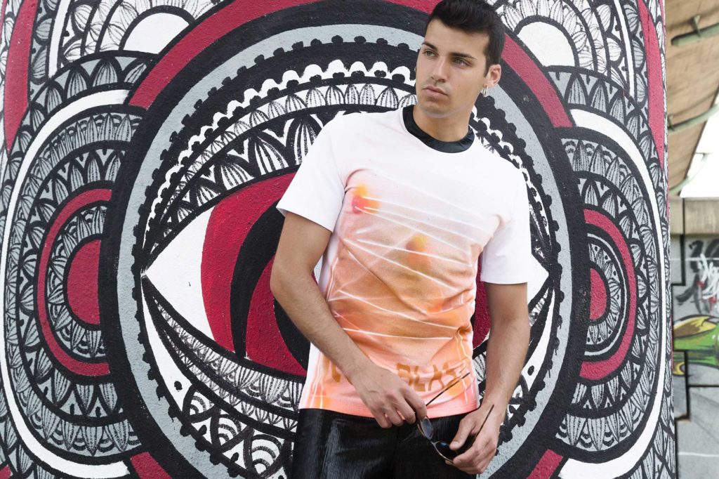 La collezione Spring/Summer 2019 : “Il cosmo creativo”. Un uomo alla ricerca del suo cosmo. Di un ordine bello, buono e razionale. Il tentare di costruire un cosmo ordinato, essendo il frutto di una fatica, di un lavoro “umano”, porta egli a rigenerarsi di giorno in giorno altrimenti ritorna al caos. Gli outfit realizzati con forme semplice e lineari per esprimere al meglio la parte “ordinata” dell’uomo stesso. Le T-shirts create in cotone e dipinte a mano dai due artisti contemporanei GaeTano&Valentina e con tessuto in fantasia colorato e bianco&nero per identificare quella parte ancora caotica, quella materia informe da domare e rendere abitabile.