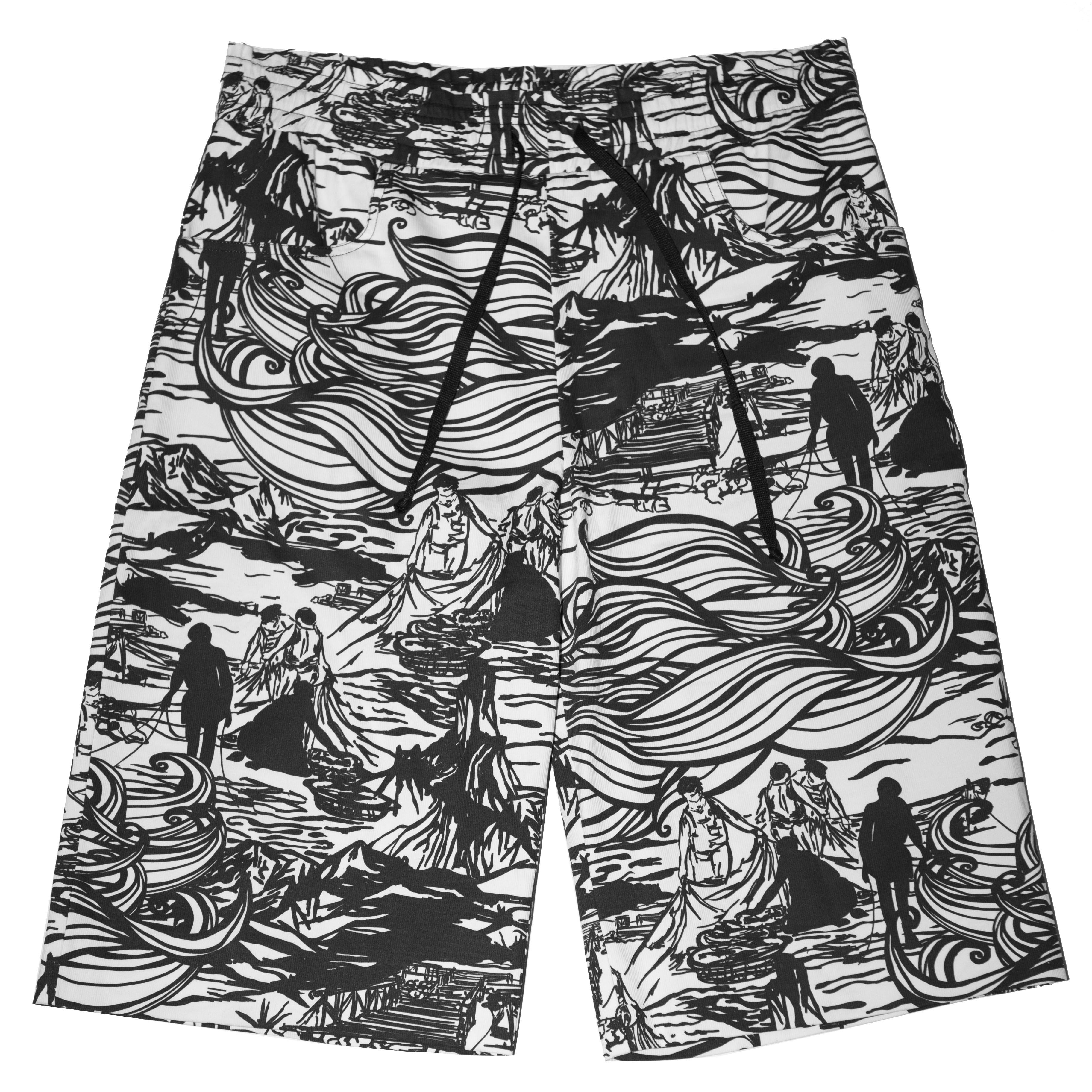 Bermuda realizzato in cotone rigido con elastin che lo rende stretch con fantasia in bianco e nero. Punto vita elasticizzato con laccetto interno per un fit confortevole e personalizzato.